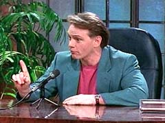 Harvey Garvey had his own television show. To promote the importance of education, Harvey had the Power Rangers appeared on his show. Harvey asked the Rangers how education helped them as Rangers. He also had clips of the Power Rangers in action, that he showed to the audience. Harvey was impressed with their moves. The Yellow and Red Power Rangers showed Harvey how to kick. He tried, but fell instead.