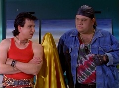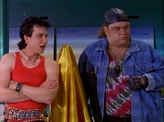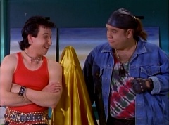 At Angel Grove High School, several students are working hard on their art projects in art class. The students include Bulk, Skull, Tommy, Adam, Billy, Kimberly, and Violet. Ms. Binx, the art teacher goes around the classroom, checking on each student's progress. Ms. Binx stops to take a look at Bulk and Skull's project. Bulk asks her, what do you think? She isn't quite sure what the lump of clay is suppose to be and struggles to find a kind remark. Ms. Binx asks Bulk, what did you say it was? Bulk replies, this will be a statue of the Power Rangers. A timeless Bulk original for generations to enjoy and admire. Skull adds, and when they come to thank us, we'll rip their heads off and show the world who they are! Skull twists off a chunk of clay and holds it up to the teacher's eye level. Ms. Binx simply walks away as the bell rings. She reminds the students that tomorrow they will finish off their projects and get a chance to show them off to the class. The next day, at Angel Grove High School, Kimberly is presenting her painting. Ms. Binx tells Kimberly she has done a remarkable job capturing the warmth and the friendship you all share. Bulk and Skull walk in front of Kimberly's presentation. Bulk remarks, not to mention the dorkness too. Bulk and Skull laugh. Ms. Binx has Bulk and Skull go next. Kimberly carries her painting back to the table where Tommy and Adam are sitting. Bulk states, as many great artists do, we had someone else do the work for us.