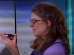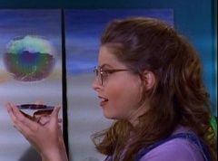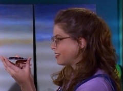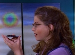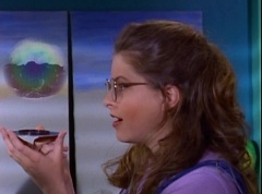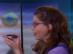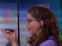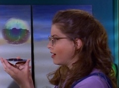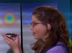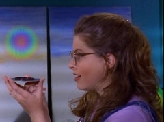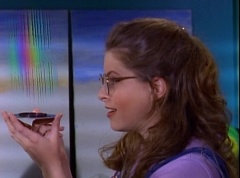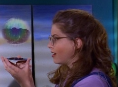 At Angel Grove High School, several students are working hard on their art projects in art class. The students include Violet, Tommy, Adam, Billy, Kimberly, Bulk, and Skull. Ms. Binx, the art teacher, goes around the classroom, checking on each student's progress. Violet stares at Billy. When he glances over, she lowers her eyes. Tommy walks over to Kimberly and comments, I never thought sculpting would be this hard. Kimberly adds, or painting either. Kimberly notices Billy's art project, which is a hologram. Billy explains the image switches, depending on what angle you view it at. Adam joins them and takes a look at the hologram - he likes the image of waves crashing on a beach. Adam passes the disc to Kimberly. Kimberly enjoys the image. Violet walks up and Kimberly passes the disc to her. Violet takes a look at the image. She tells Billy, it's beautiful. Do you want to see my project?