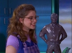 Billy replies, sure, At the other table, Violet reveals her statue. Tommy compliments her, by telling her the statue is excellent. Kimberly notes it looks just like Billy. Billy nervously agrees. The bill rings and Ms. Binx reminds the students that tomorrow they will finish off their projects and get a chance to show them off to the class. As the students clean up, Violet walks up to Billy and taps him on the shoulder. Billy turns around and she asks maybe I will see you at the gym? Billy replies, sure why not. They both grin at each other. Violet walks away. Once the room is empty, Rita Repulsa turns the statue into Evil Billy. After school, at the Youth Center, evil Billy is lifting weights. Ernie walks over to deliver a tray of drinks to where Kimberly, Tommy, Adam, Rocky, and Aisha are studying at. Ernie comments that Billy's workout plan must be working. Adam, Rocky, and Aisha glance over at evil Billy. Rocky comments, I would like to know his secret. Violet is there as well and she is openly admiring evil Billy. Evil Billy gets a look of contempt when he notices Violet. Evil Billy walks over to the counter and deliberately passes by Violet. With a big smile on her face, Violet tells him hi. Evil Billy keeps his back towards Violet as she tries to talk to him. Hurt, Violet walks away.