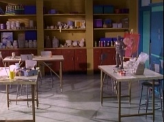 At Angel Grove High School, several students are working hard on their art projects in art class. The students include Tommy, Adam, Billy, Kimberly, Bulk, Skull, and Violet. Ms. Binx, the art teacher, goes around the classroom, checking on each student's progress. Violet stares at Billy. When he glances over, she lowers her eyes. Tommy walks over to Kimberly and comments, I never thought sculpting would be this hard. Kimberly adds, or painting either. Kimberly notices Billy's art project, which is a hologram. Billy explains the image switches, depending on what angle you view it at. Adam joins them and takes a look at the hologram - he likes the image of waves crashing on a beach. Adam passes the disc to Kimberly. Kimberly enjoys the image. Violet walks up and Kimberly passes the disc to her. Violet takes a look at the image. She tells Billy, it's beautiful. Do you want to see my project? Billy replies, sure. At the other end of room, Ms. Binx has stopped to take a look at Bulk and Skull's project. Bulk asks her, what do you think? She isn't quite sure what the lump of clay is suppose to be and struggles to find a kind remark. At the other table, Violet reveals her statue. Tommy compliments her, by telling her the statue is excellent. Kimberly notes it looks just like Billy. Billy nervously agrees. Meanwhile, Ms. Binx asks Bulk, what did you say it was? Bulk replies, this will be a statue of the Power Rangers. A timeless Bulk original for generations to enjoy and admire. Skull adds, and when they come to thank us, we'll rip their heads off and show the world who they are! Skull twists off a chunk of clay and holds it up to the teacher's eye level. Ms. Binx simply walks away as the bell rings. She reminds the students that tomorrow they will finish off their projects and get a chance to show them off to the class. As the students clean up, Violet walks up to Billy and taps him on the shoulder. Billy turns around and she asks maybe I will see you at the gym? Billy replies, sure why not. They both grin at each other. Violet walks away. Tommy reminds Kimberly, Billy, and Adam that they have to get going. They are suppose to study with the others at the Juice Bar. Kimberly, Billy, Adam, and Tommy head out of class. When the classroom is empty, Goldar and Squatt teleport in. Goldar notes the humans have all left the room. Goldar announces, the statue is ready for your personnel touch, mighty Lord Zedd. On the Moon Palace, Lord Zedd begins his incantation. May rivers run red, the sun die to embers. A spell I shall cast, if my lines I can remember. Rita Repulsa becomes impatient and yells at Lord Zedd to forget the incantation, and just say make him the bad Blue Ranger! Rita Repulsa grabs Lord Zedd's staff and points it towards the classroom as she yells, Blue Ranger be bad! At Angel Grove High School, in the art classroom, the statue turns into evil Billy. Goldar and Squatt walk up to him. Evil Billy refers to Goldar, as Lord Goldar. This makes Squatt laugh and Goldar points his sword at him and tells him silence! Goldar comments this is good. Evil Billy gets off the table and walks around, taking a look at everything around him. Goldar continues, now I shall capture the real Blue Ranger, and put him to sleep forever! You will take his place, and together we will destroy the Power Rangers! Evil Billy likes the idea and his eyes flash red. Although Billy is captured and taken to the Dark Dimension, he eventually escapes. He joins the rest of his friends in fighting and defeating the Evil Billy with their Blade Blasters. Vase Face is destroyed by Thunder Megazord. The next day, at Angel Grove High School, Violet is looking through the supplies when Billy walks up behind her. Billy apologizes for the way he's been acting. (Evil Billy had been very unkind to Violet.) I haven't actually been myself lately. Violet turns around and smiles. She tells Billy, it's okay. Everyone has a bad day, once in awhile. I'm sure there was a good reason. Billy thanks her. You know, you're really understanding. Billy asks if she would like to go to the movies some time? Violet replies, I would love that. Ms. Binx walks into the classroom. She asks who would like to be first to show their project? Kimberly volunteers and displays her painting. Ms. Binx thinks it's lovely. Tommy gives Kimberly a thumbs up. Ms. Binx tells Kimberly she has done a remarkable job capturing the warmth and the friendship you all share. Bulk and Skull walk in front of Kimberly's presentation. Bulk remarks, not to mention the dorkiness too. Bulk and Skull laugh. Ms. Binx has Bulk and Skull go next. Kimberly carries her painting back to the table where Tommy and Adam are sitting. Bulk states, as many great artists do, we had someone else do the work for us. Skull and Bulk applaud Violet. Ms. Binx remarks, oh really? Name two? Skull replies, Bulk and Skull. Ms. Binx can only shake her head. Bulk continues, this statue will sit proudly in town square and the Power Rangers themselves, will appear and thank us for our vision. Bulk pulls the cloth off the statue. The statue is dressed in a gold Mighty Morphin costume and looks a lot like Billy. Violet asks Billy if he likes it? Billy is stunned and doesn't know what to say. Skull and Bulk are stunned as well. Bulk asks Violet, what is this suppose to be? Violet replies, I thought you would want a statue that illustrates the qualities that it takes to be a Power Ranger. If anyone has them, it's Billy. Billy is flattered. Bulk remarks, that dweeb! You are out of your mind. Skull adds, get real! Bulk continues, Billy...a Power Ranger! That is the most ridiculous thing I have ever heard in my entire life. Adam, Tommy, and Kimberly exchange amused glances. Skull and Bulk walk out. Adam, Tommy, and Kimberly gather around Billy and Violet. Tommy imitates the same pose as the statue.