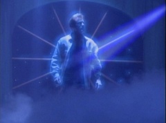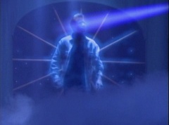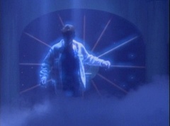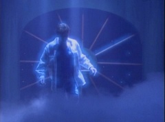 Billy called for his friends as he walked around. A device shot out a blue ray that kept him from going any further. Billy checked for his communicator, but it was gone. Billy spotted it on the floor and reached for it, but was too late as Goldar got it before him. Billy demanded that Goldar give it back to him. Goldar replies, why it would be my pleasure. Squatt was in the Dark Dimension as well, holding Billy's backpack. Billy was surprised to see a duplicate of himself take the morpher and backpack from Squatt. (The statue that Violet had created had been turned into Evil Billy.) He took the communicator from Goldar as Squatt stumble over what to call evil Billy. Evil Billy glare at Billy as Goldar told him, you know what to do. Gain the Rangers' trust, then steal their communicators and morphers. Once they've been cut off from Zordon, Lord Zedd and Rita will be able to crush them once and for all! Billy tells evil Billy that he will never get away with this. No one is going to believe you are me. Evil Billy doesn't say anything, just glares, and then vanishes. Goldar tells Billy it's a pity you won't be around to see it. The Fog of Morpheus causes eternal sleep. Goldar laughs and he and Squatt vanish.