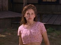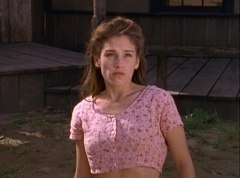 Zedd's Putties move in closer and the teens separate. Kimberly battles a Putty with a swift kick. Rocko uses a wash basin to battle another group of Zedd's Putties. Abraham and Miss Alicia incorporate dance moves to fight their batch of Zedd's Putties. William manages to get a Putty to fall. The rest of Zedd's Putties step on the Putty's back as they chase after William. Kimberly continues to battle her batch of Zedd's Putties. Goldar appears behind her. Goldar states, well Miss Kimmy, your pathetic power imposters couldn't fight tooth decay, much less Zedd's Putties. William, Rocko, Miss Alicia, and Abraham gather around Kimberly. Goldar continues by telling Kimberly, why don't you just sit a spell while I consolidate my master's control of the world. Goldar laughs and vanishes. Miss Alicia, Abraham, Rocko, and William become alarmed. Kimberly tries to protect her new friends as Zedd's Putties run in circles around them. Miss Alicia is the first to spot the White Stranger racing towards them. Abraham comments, just in time. White Stranger gets off his horse and immediately fights Zedd's Putties. After defeating several, White Stranger walks over to them. A Putty gets behind Kimberly. White Stranger spots him and hits him. Kimberly starts to fall, but White Stranger catches her. White Stranger tells them, if you need me again, just holler. I'll be here. Goldar and Needlenose appear. Zedd's Putties go over to Goldar and Needlenose. Goldar can't believe they are still here. It's time you all got out of town and don't come back! Kimberly replies, for once you're right Goldar. Kimberly tells her new friends, it's time. Kimberly, Miss Alicia, William, Rocko, and Abraham morph. The Rangers race forward into battle. White Stranger battles a batch of Zedd's Putties as well. Blue Ranger battles another batch of Zedd's Putties. Red Ranger has fun as he plays Toro Toro with his batch of Zedd's Putties. Yellow Ranger battles another set of Zedd's Putties. Black Ranger battles a batch of Zedd's Putties, but he is disappointed that Zedd's Putties messed up his boots. Eventually Zedd's Putties are destroyed. The Rangers and White Stranger gather together and face down Goldar and Needlenose. Needlenose shoots one of it's spores and it hits White Stranger. He is immediately paralyzed and falls to the ground. Pink Ranger drags him to safety and the Rangers stand in front of him. Needlenose is ready to fire another spore. Goldar exclaims enough! This is the final showdown Miss Kimmy. When my spiny friend and I are through with you, Angel Grove's past will be destroyed and your friends in the future will vanish forever! When I count to three, draw! Goldar starts counting. The Rangers fired their Blade Blasters. The force sends Goldar and Needlenose back through the time hole. Pink Ranger asks White Stranger if he is okay? White Stranger is much better. Pink Ranger demorphs and they join Miss Alicia, William, Rocko, and Abraham out in the street. Everyone is in high spirits. Soon Miss Alicia, William, and Abraham start dancing, to the amusement of Kimberly. Afterwards, a time hole appears and Kimberly takes a chance and goes through it. She ends up at the Command Center, in present time. Kimberly gives Tommy a big hug and tells her friends, I knew you guys would rescue me. Everyone is very happy.