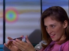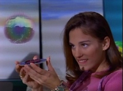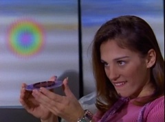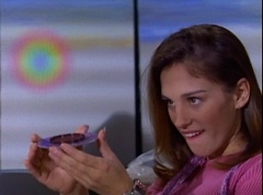At Angel Grove High School, several students are working hard on their art projects in art class. The students include Kimberly, Tommy, Adam, Billy, Bulk, Skull, and Violet. Ms. Binx, the art teacher goes around the classroom, checking on each student's progress. Violet stares at Billy. Tommy walks over to Kimberly and comments, I never thought sculpting would be this hard. Kimberly adds, or painting either. Kimberly notices Billy's art project, which is a hologram. Billy explains the image switches, depending on what angle you view it at. Adam joins them and takes a look at the hologram - he likes the image of waves crashing on a beach. Adam passes the disc to Kimberly. Kimberly enjoys the image.