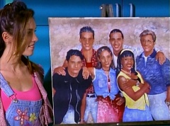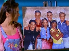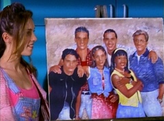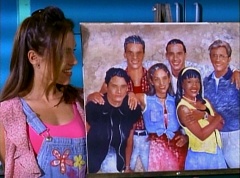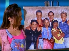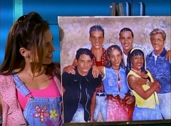 The next day, at Angel Grove High School's art class, Ms. Binx walks in. She asks who would like to be first to show their project? Kimberly volunteers and displays her painting. Ms. Binx thinks it's lovely. Tommy gives Kimberly a thumbs up. Ms. Binx tells Kimberly she has done a remarkable job capturing the warmth and the friendship you all share. Bulk and Skull walk in front of Kimberly's presentation. Bulk remarks, not to mention the dorkness too. Bulk and Skull laugh. Ms. Binx has Bulk and Skull go next. Kimberly carries her painting back to the table where Tommy and Adam are sitting. Bulk states, as many great artists do, we had someone else do the work for us. Skull and Bulk applaud Violet. Ms. Binx remarks, oh really? Name two? Skull replies, Bulk and Skull. Ms. Binx can only shake her head. Bulk continues, this statue will sit proudly in town square and the Power Rangers themselves, will appear and thank us for our vision. Bulk pulls the cloth off the statue. The statue is dressed in a gold Mighty Morphin costume and looks a lot like Billy. Violet asks Billy if he likes it? Billy is stunned and doesn't know what to say. Skull and Bulk are stunned as well. Bulk asks Violet, what is this suppose to be? Violet replies, I thought you would want a statue that illustrates the qualities that it takes to be a Power Ranger. If anyone has them, it's Billy. Billy is flattered. Bulk remarks, that dweeb! You are out of your mind. Skull adds, get real! Bulk continues, Billy...a Power Ranger! That is the most ridiculous thing I have ever heard in my entire life. Kimberly, Adam, and Tommy, exchange amused glances. Skull and Bulk walk out. Kimberly, Adam, and Tommy gather around Billy and Violet. Tommy imitates the same pose as the statue.
