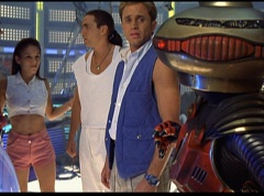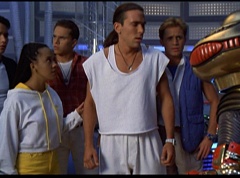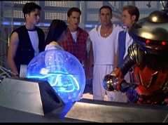 Rocky, Aisha, Adam, Tommy, and Billy hurry over to Alpha 5, as Kimberly stays by Zordon's side. Tommy asks Alpha 5 if he is ok? Alpha 5 replies, I'll be fine. There may be a power that can save Zordon. Adam asks, what power? Alpha 5 replies, it is on the distant planet of Phaedos. It's very dangerous. All who have tried for it have perished. Rocky states, we have to try, Alpha. Alpha 5 tells the teens, Zordon's life force will not last long. You won't have much time. Tommy asks, how can we get there? Alpha 5 thinks maybe if he can download the very last plasmatic morphing gem into the transport core, I might have just enough power to get you there. But there won't be any left to get you back. Rocky asks, so how do we get back? Kimberly joins the group and tells them, we have to hope that the power's there. Zordon's life depends on it. Alpha 5 punches a couple of buttons and asks them if they are ready. The teens are ready. Tommy tells them, we may not have our powers, but we're still the Power Rangers. Alpha 5 warns the teens that Zordon does not have much time. Alpha 5 presses the button. The power struggles for a moment but then the teens are teleported out of the Command Center. Alpha 5 pleads with Zordon to hold on.