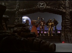 Rita Repulsa spots the teens as they teleport to Phaedos. Rita is upset. How could he let them slip through his hands? He's no better than the rest of the hired help around here! Lord Zedd tells her to give it a rest. Ivan Ooze enters the Moon Palace. Rita immediately launches into him. You egg-sucking purple pinhead! The Rangers are going after the Great Power! I thought you said this guy was the master of disaster. He's nothing but a slime-infested jelly doughnut!