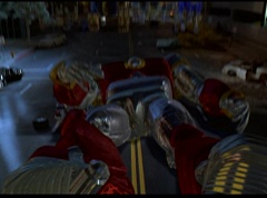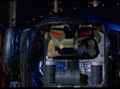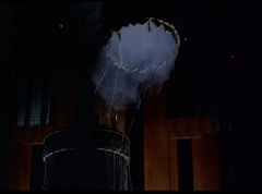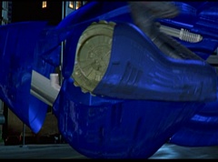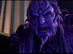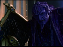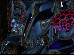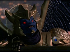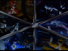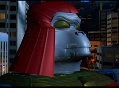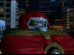 Hornitor flings Ninja Ape Zord off his back. The rest of the Ninja Zords gather together and face Hornitor. Ivan Ooze is very upset - they've destroyed my beautiful creations. Now I'm beginning to get really angry! Ivan Ooze turns into goo and oozes it's way into Hornitor. Goldar cheers for Ivan Ooze. Hornitor's face dissolves and Ivan Ooze's face takes it's place. Goldar flies away as Ivan Ooze breaks off the tower they were standing on. Ivan Ooze steps onto the monorail, breaking it apart as he approaches the Ninja Zords. White Ranger states we need Ninja Megazord now! The Ninja Zords prepare to combine.
