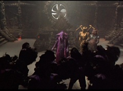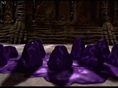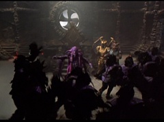 Ivan Ooze considers what to do for a moment. Ivan Ooze then shoots out a large booger. The goo starts to bubble and spread. Tenga Warriors emerge from the goo. They squawk loudly among themselves until Ivan Ooze tells them to be quiet. Ivan Ooze instructs them that they will fly to Phaedos, find the Power Rangers, and tear them apart. The Tenga Warriors immediately take off flying towards Phaedos.