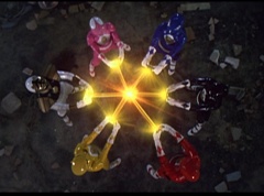 Each Ranger calls on their Ninja Zord. Goldar has been watching and he is concern. The Ninja Zords arrive. Goldar points to the sky and tells Ivan, it's the Zords! Ivan is not concerned, he is confident that he can crush them. The Rangers enter their Ninja Zords. Meanwhile, the hypnotized parents continue on their way to the construction site.