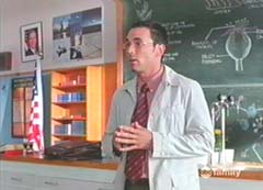Tommy stayed busy working in the field of paleontology. He was working on a project with Anton Mercer. Anton disappeared and a few days later his lab was wreck and Tommy was running for his life. He managed to escape the creatures pursuing him by jumping into the ocean. He watched as flames erupted around the island and it began to sank. A few years later, Tommy began his first day as a science teacher at Reefside High School. He walked along the halls and was joined by Principal Randall. Principal Randall had just joined the staff as well. Tommy offered his hand for a handshake, but Principal Randall ignored it. Instead, she made a lot of comments about Tommy's field of work and why he would be teaching. Tommy decided to tackle the problem by asking the Principal if they could get together later and she could explain what she expected out of him. Principal Randall told him to make the class as miserable as possible and if the students were smiling, he wasn't doing his job. Tommy was a bit bewildered by the Principal, but she left to find tyrants. Tommy continued his way into his class room. He quieted the class and introduced himself. Tommy asked if anyone had any questions. A young girl raise her hand and Tommy called on her. The young girl introduced herself as Cassidy Cornell - the school's TV anchor and reporter. Cassidy thought Tommy looked a little young to be a teacher and motion Devin to bring his camera. Tommy assured the class that he was old enough and had both kids sit down. He noticed the empty seat and ask if anyone was missing. Overall, his first day had been good. He ran into Principal Randall again, who informed him that he would be supervising detention. Tommy had other plans, he wanted to get to a museum on the outskirts of town. Principal Randall felt this was perfect punishment for the students and told Tommy to take them along. Tommy took Conner McKnight, Ethan James, and Kira Ford with him. He was rather surprised when he discovered the museum was closed. The students were ready to call it a day, but Tommy wanted to know what was going on. He told the students that they should explore the grounds and if they found any prehistoric item, he would take them off detention for the week. The students hurried off and Tommy set about looking around. He was surprised to see a plaque with Anton Mercer's name on it - that wasn't possible. He continued to search around the outside of the building. Tommy realized that the huge T-Rex that had been standing by the building, was now gone. The T-Rex soon found Tommy. Tommy gave the T-Rex a quick spinning kick and then set off for his jeep. He berated himself for locking the door and fumble with the keys. Tommy got the jeep going and the race was on. He spotted a bridge up ahead and maneuvered the jeep through it. The T-Rex followed, bumping his head on the bridge and tumbling to the ground. Tommy stopped the jeep and went to investigate the T-Rex. He was bemused to electronic sparks coming from the dinosaur's head. Tommy decided to locate his students and bring them back to school. He found them and ask if they were okay. Kira was about to say something, but Ethan and Conner overrule her. Ethan made a comment about lots of furry creatures. Kira mummer under her breath, about scaly ones to. Tommy heard her comment, but Conner was asking about the museum. Tommy told him, he would have to come back and took the kids back to school. Tommy returned to his own home. He was working in his special room underground when he heard voices. Tommy was not happy to see Conner and Ethan there.