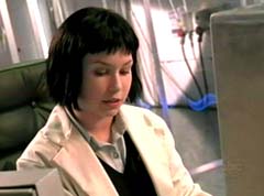 Dr. K was in the garage with Summer, Flynn, Scott, and Ziggy. She was giving them a briefing of what was happening in the city. Dillon came down the stairs and joined them. Dr. K: Rangers, I'm picking up a transmission from within the city that is designed to momentary cause shield energy disruption, but there's another signal headed south by southwest through the sewer corridor. Flynn: The sewer, of course. What fun. Scott: No, it's target must be the city's central dam. If we cut across the aqueduct we can beat it there. Dr. K: And I'll try and track the source of the energy disruption. Dr. K headed over to the Ranger room as the teens took off on their vehicles. Dr. K worked on her computer, trying to find the source of the transmission. The Rangers were battling an attack bot and numerous Grinders. Red Ranger would soon contact her. Red Ranger: Dr. K, have you found the source of that pulse signal yet? Dr. K: Not yet. Dr. K continued to work on her computer. Dr. K: Where is that signal coming from? The Rangers were having a difficult time against the attack bot. Colonel Truman and Corporal Hicks have also been monitoring the battle. Colonel Truman: Dr. K, can my men be of any help? Dr. K: Right now Colonel, just stay out of their way. Rangers, being offensive maneuvers. Wishbone Alpha. Blue Ranger: Ahh, the Wishbone, one of my favorites. Eventually the Rangers destroy the Grinders and the attack bot. Dr. K contacts the team again. There is another attack bot in the woods. The Rangers head out. In the midst of the battle, Dr. K has located the source of the transmission. The Rangers destroy the attack bot. The teens head over to their vehicles, when Dr. K contacts them once more. There is trouble at the docks. Scott knows they cannot keep up this pace. The team splits up. Dr. K sends the coordinates to Dillon and Ziggy who are going after the source of the transmission. Summer, Flynn, and Scott head off for the docks. After awhile, Yellow Ranger, Blue Ranger, and Red Ranger have taken care of the problem at the docks and now head off for the coordinates of Sat Bot - the source of the transmission. The three Rangers battle Sat Bot. Red Ranger is about to strike when Black Ranger arrives and stops him. Sat Bot has his memories and doesn't want the attack bot destroyed. Dr. K contacts Black Ranger and tells him he cannot let personal agendas and emotions interfere with his duties as a Ranger. Black Ranger does not care. Green Ranger teleports over to Sat Bot to stop him. Black Ranger once more interferes and Dr. K has no choice but to start taking him offline. Dr. K offers to give him one more opportunity, but Black Ranger refuses to listen. Dr. K continues to take Black Ranger offline. She is stunned when Black Ranger manages to get back online. Eventually Black Ranger will realize Sat Bot needs to be destroyed and the Rangers destroy him with the RPM Enforcer. After the battle, Dillon is taken to the Ranger room and being scanned. Summer is there as well as Dr. K. Dillon wakes up. Dr. K has bad news. There was a virus planted in Dillon's circuitry and Sat Bot has activated it. The virus will eventually take Dillon over, and there is no cure.