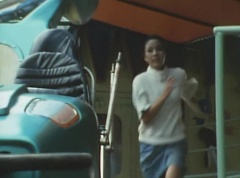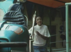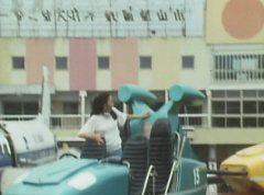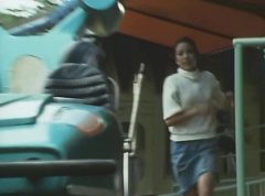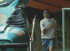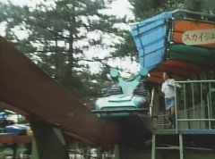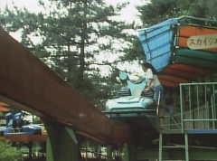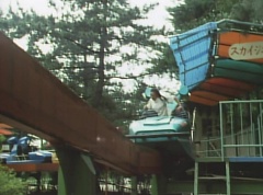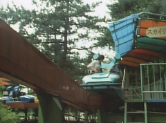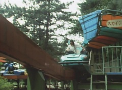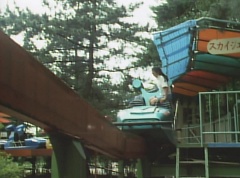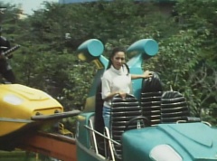 Mido Ranger pauses to fight a couple more Zolders. Yoko jumps into an empty car on a roller coaster. The car takes off on the track as several Zolders try to stop it. A couple of Zolders jump into the car behind Yoko. Yoko glances anxiously around, but there is nothing she can do.