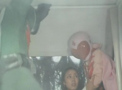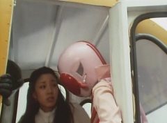 Yoko is struggling as Peggy tells her to hang in there. She tells Kenji, we need to find a way out of here! Kenji responds, leave it to me! Kenji transforms into Mido Ranger. Mido Ranger kicks out the glass of their cabin. Mido Ranger and Momo Ranger manage to open the cabin door and grabs chunks of black hair and throw it below. Momo Ranger spots Variblune. Yoko grabs onto Momo Ranger as Momo Ranger and Mido Ranger use their Birdies to reach Variblune. They head off for White Mountain Reservoir.