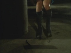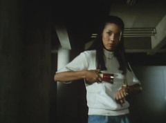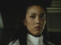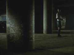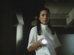 Yoko Kato is walking in a dark area, she uses her flashlight to search the area. She hears footsteps and hides behind a pillar. A note is dropped on the pavement. Yoko makes her way carefully towards the note.