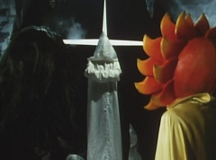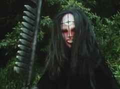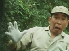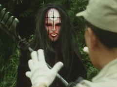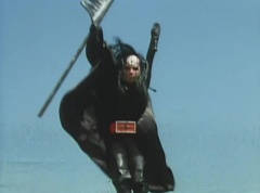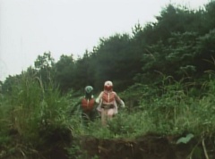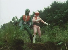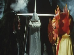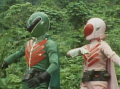 At Black Cross Base, Sun Halo Mask tells Black Hair Mask unless the Gorengers are dead, we can't call it a successful operation! Black Hair Mask responds, if you want to defeat the Gorengers, you have to use some brains! Sun Halo Mask is insulted. Black Hair Mask tells him, let's set up a trap and lead them right into it. Black Cross Fuhrer tells them, the Gorengers won't fall easily into our trap. Black Hair Mask boasts that he already has the best Zolders., ready to get in touch with EAGLE'S contact!