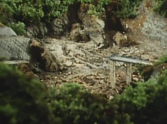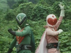 Black Hair Mask is about to strike the worker when Midomerang strikes him. Black Hair Mask informs Mido Ranger and Momo Ranger that they are too late. There's no water left in the reservoir! Black Hair Mask leaps away. Mido Ranger suggests to Momo Ranger they take a look at the reservoir. The two are stunned to see there is no water.