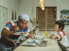 At Snack Shop Gon, Daita Oiwa is preparing himself a bowl of curry. Taro Kato is sitting at the counter. Daita tells Taro a riddle. But the riddle is too easy for Taro and he figures it out quickly. Daita agrees that the riddle was too easy.