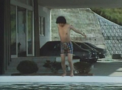 Kanzanji Hot Spring, Sun Hotel has an outdoor pool, which Kenji, Taro Kato, and Haruko Nakamura are enjoying. Kenji takes a dive into the pool and swims as Haruko times him. Taro cheers him on. Peggy sits in a chair, not participating. Kenji and Haruko notice Peggy in deep thought and Kenji tells Peggy to lighten up. Kenji then declares that he is hungry. Suddenly Peggy gets up and starts running. Haruko notices and asks her, what's wrong? Kenji and Haruko run after Peggy. Peggy reaches the rooftop, still searching. Kenji asks her, what happened? Peggy tells them, there were eyes on the Sunglasses. Peggy is insistent that she knows what she saw. There is nothing around and Kenji tells Peggy she should just rest. That night, Kenji and Haruko hear Peggy's screams. They run towards her room. They find Peggy unconscious. Kenji shakes her awake, and Peggy takes a wild eyed look around. Peggy insists it's the mirror.