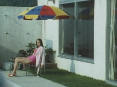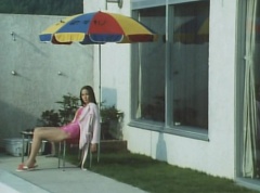 Kanzanji Hot Spring, Sun Hotel has an outdoor pool, which Kenji, Taro Kato, and Haruko Nakamura are enjoying. Kenji takes a dive into the pool and swims as Haruko times him. Taro cheers him on. Peggy sits in a chair, thinking over what had happened to her. She is certain someone was in the mirror. Haruko and Kenji notice Peggy in deep thought and Kenji tells Peggy to lighten up. Kenji then declares that he is hungry. Peggy is still going over what had happened.