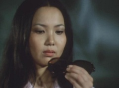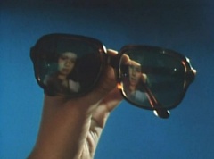 The boy is a bit creepy and Peggy is unnerved by him. The little boy gives Peggy her sunglasses back and walks away. Peggy takes a close look at the sunglasses and doesn't see anything. The eye appears in the pool.