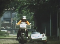 Physics scholar Professor Kudo has arrived back in Japan. Professor Kudo exits the international airport. Zolder X - watching from across the street - uses his radio transmitter to let Black Cross Army know the professor has returned. Professor Kudo is escorted by three policemen. Tsuyoshi, Peggy, and Kenji get off their Machines and greet Professor Kudo. After introductions, Professor Kudo expresses how impressed he is with his security. Professor Kudo gets into his car with the policemen. Tsuyoshi rides in front of the car, on his machine, while Peggy and Kenji drive behind the car. Zolder X gives directions over his radio transmitter. Soon the trio of vehicles came to a tunnel. They all stop and Tsuyoshi has Kenji and Peggy enter first to check for any danger. Kenji and Peggy enter the tunnel. They drive clear through to the other side with no problems. After a quick look around on the other side, they let Tsuyoshi know it's ok to drive through. Tsuyoshi enters the tunnel with the car behind him. They are stopped by a dark figure in the tunnel. Tsuyoshi turns on the lights on his machine. The beams shine on the figure - Boat Ear Mask of the Black Cross Army. Tsuyoshi shouts back at the car to go. The car goes in reverse and Tsuyoshi follows on his Machine. Boat Ear Mask laughs. Boat Ear Mask goes after them as well, riding in a jeep with Zolders and a small cannon. Boat Ear Mask has the Zolders fire the cannon. Tsuyoshi, on his Machine, is knocked off the road. Boat Ear Mask has the Zolders fire again. The car goes off the road. The policemen get out of the car and fire at Boat Ear Mask and the Zolders. Boat Ear Mask fires darts out of it's mouth. The darts hits three of the policemen and they are knocked out. The Zolders race over to the car. One Zolder grabs the remaining policemen from the driver's side as the other Zolder grabs Professor Kudo. The Zolder is surprised when the policemen is revealed to be Tsuyoshi. Professor Kudo is actually Peggy in disguise. Tsuyoshi hits the Zolder several times. Peggy kicks a Zolder aside. Boat Ear Mask walks up to them and wants to know when did they make the switch. Tsuyoshi replies, we made the change along the way. Boat Ear Mask asks, then the real Professor Kudo is...? Elsewhere, Kenji drives his Machine with Professor Kudo in the sidecar. Kenji reassures the professor that they are alright now. Professor Kudo is quite enjoying the adventure. A group of Zolders are hiding in the hilly grass, close to a road. A Zolder soon spots Kenji and Professor Kudo on the Machine and informs the rest of the Zolders. The Zolders throw a large boulder down the hill. This causes a rock slide which hits Kenji and Professor Kudo. The Machine is knocked off the road and falls down a hill. Kenji is thrown from the Machine. He gets up with difficulty and checks on Professor Kudo. Professor Kudo is unconscious with a gash on his forehead. Kenji realizes they are in serious trouble. He carefully removes Professor Kudo from the sidecar. Holding onto semi conscious Professor Kudo, Kenji makes his way back to the road. Kenji flags down a car. When the car stops, Kenji tells the driver Professor Kudo is injured and needs to go to the hospital. The driver is willing and opens the back door for them. Kenji carefully helps Professor Kudo into the back seat. But Kenji is prevented from entering by the gun pointed at his face. Kenji slowly backs away. The driver is actually a Zolder and he fires his gun at Kenji. Kenji is hurt and falls, sliding back down the embankment. The car speeds away as Kenji makes his way back to the road. Kenji transforms into Mido Ranger and flies in the sky with his Birdies. Unfortunately, Mido Ranger is defeated in another battle with Boat Ear Mask. Soon, Aka Ranger and Momo Ranger, on their Machines find Mido Ranger off the side of the road. They quickly rush to his aid. Haruko and Tomoko arrive and quickly offer their help. They let the two Gorengers know they were following Professor Kudo. Aka Ranger tells them they will do the rest. Take care of Mido. Tomoko and Haruko help Mido Ranger to their car. Haruko lets them know the professor's car stopped 2 kilometers northeast of here. Aka Ranger concludes that is their hideout. Aka Ranger and Momo Ranger take off on their Machines. Aka Ranger and Momo Ranger come up with a plan and successfully rescue Professor Kudo. Soon Aka Ranger and Momo Ranger are on their Machines, with Professor Kudo in the sidecar. Boat Ear Mask and several Zolders chase after them in their jeep. Ear Mask orders the Zolders to drive them into the minefield. A Zolder uses the cannon to drive the two Gorengers off the road and into the minefield. Boat Ear Mask laughs as they chase after them. Mines erupted all around the two Gorengers. They soon stop driving their Machines. Momo Ranger tells Aka Ranger they are in a minefield. Aka Ranger decides to leave the Machines behind. They take Professor Kudo out of the sidecar and begin walking to try and escape the minefield. When they find a safe spot, Aka Ranger contacts the base and help arrives in the form of Variblune. Momo Ranger gets Professor Kudo into the tube and Professor Kudo shoots up into Variblune while Aka Ranger battles Boat Ear Mask. Soon the rest of the Gorengers arrive. Another battle follows and Boat Ear Mask is destroyed by Gorenger Storm. Afterwards, on their Machines, the Gorengers patrol the city.