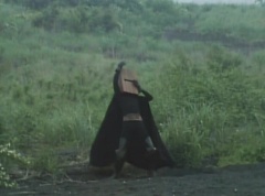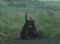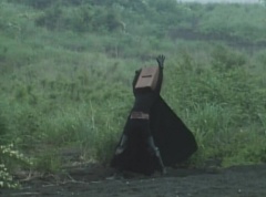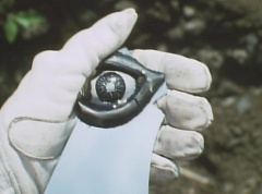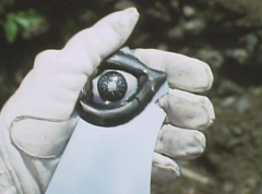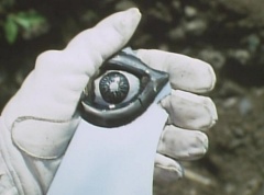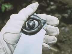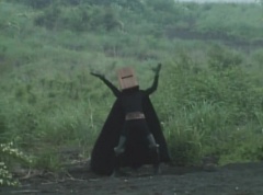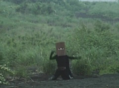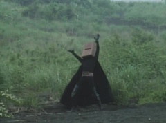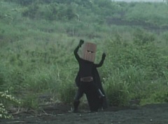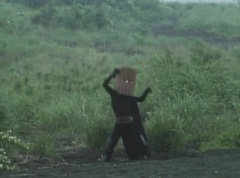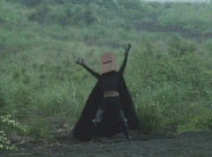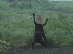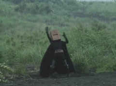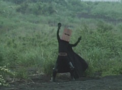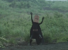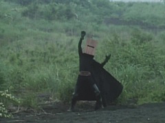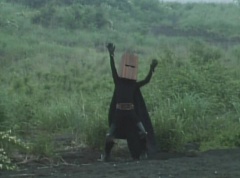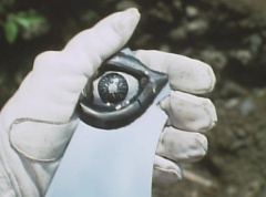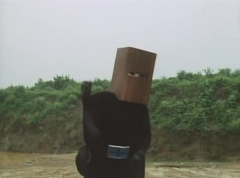 Mirror Mask tries again. This time it strikes a boulder and breaks it apart. The Gorengers prepare to summon Gorenger Storm. Momo Ranger places a pink ball on the ground and kicks it towards Ki Ranger. Ki Ranger head butts the yellow ball towards Mido Ranger. Mido Ranger kicks the green ball towards Ao Ranger. Ao Ranger kicks the blue ball towards Aka Ranger. Aka Ranger jumps into the sky and kicks a red, spikey ball towards Mirror Mask. Gorenger Storm hits Mirror Mask and destroys him.