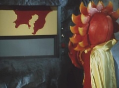 He activates a screen, that lowers a map that has five blinking lights on it.