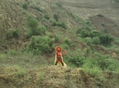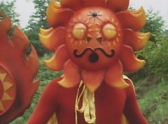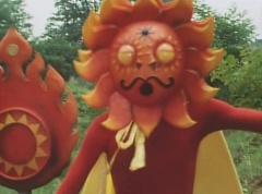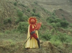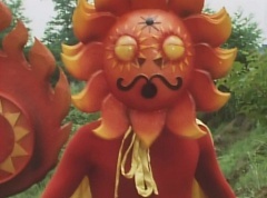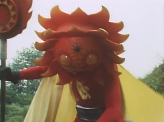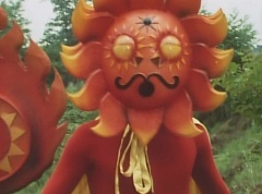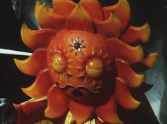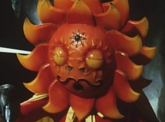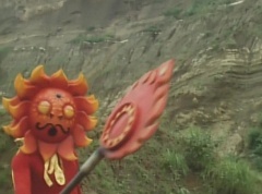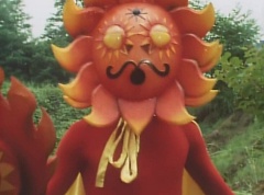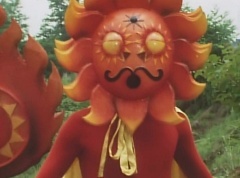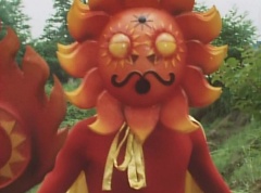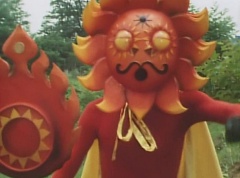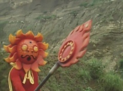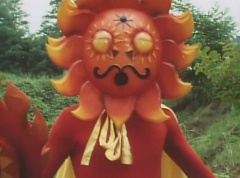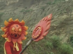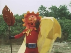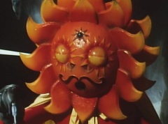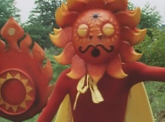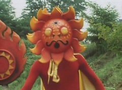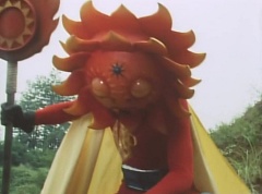 Sun Halo Mask runs over and tells Mirror Mask to get a grip. Mirror Mask argues with Sun Halo Mask. The reflection had made Mirror Mask mad and he relentlessly attacks Sun Halo Mask. Sun Halo Mask is knocked off his feet and he yells at Mirror Mask that we're on the same side. The fight continues between the two. Sun Halo Mask continues to defend himself against Mirror Mask. Sun Halo Mask bets that the memory circuit got messed up. This time Sun Halo Mask knocks Mirror Mask off his feet. Sun Halo Mask retreats. The Gorengers destroy Mirror Mask with Gorenger Storm. Afterwards, Black Cross Fuhrer is upset over another failure. Sun Halo Mask apologizes. Black Cross Fuhrer angrily asks, who can defeat the Gorengers? Black Hair Mask steps forward and states he will take the challenge.