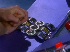 Kimberly had been swept into a time hole, which transported her to the past - western Angel Grove. At the Command Center, her friends tried to figure out a way to bring her back to present time. After awhile, Billy tells Tommy, I think I've figured out a way to bring Kimberly back to the present, but I'm going to need three communicators. Without hesitation, the rest gave Billy their communicators and Billy gets to work. Soon Zordon informs them that the blast only knock the cactus plant into the present. You need to confront him. Billy points out that he is not finished with the communicators. Tommy suggests that he and Rocky go. We'll see you as soon as you can. Tommy and Rocky morph and teleport out. Unfortunately it is not enough and soon Zordon informs them that the Red Ranger and the White Ranger are in trouble. You need to join them now. Billy tells Aisha and Adam, this will have to wait. Aisha, Billy, and Adam morph and teleport out. A battle follows and eventually Needlenose is destroyed by Mega Thunderzord. Afterwards, back at the Command Center, Zordon congratulates Aisha, Adam, Tommy, Rocky, and Billy. You have saved the world again. Tommy remarks, we may have saved the world, but we lost Kimberly. Aisha tells Billy, we got to get her back. Billy tells his friends he has adapted the communicators to enhance and accelerate the teleporting mechanism, and create a time hole. But I have to warn you, we can only try this once and if it fails.....Tommy adds, Kimberly is trapped in the past forever. Billy tells them where the time hole should appear and gets to work. A time hole appears and within moments, Kimberly is walking through it. Kimberly gives Tommy a big hug and tells her friends, I knew you guys would rescue me. Everyone is very happy.