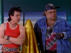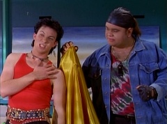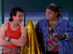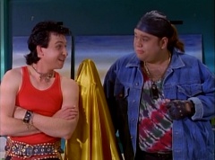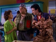 At Angel Grove High School, several students are working hard on their art projects in art class. The students include Bulk, Skull, Tommy, Adam, Billy, Kimberly, and Violet. Ms. Binx, the art teacher goes around the classroom, checking on each student's progress. Ms. Binx stops to take a look at Bulk and Skull's project. Bulk asks her, what do you think? She isn't quite sure what the lump of clay is suppose to be and struggles to find a kind remark. Ms. Binx asks Bulk, what did you say it was? Bulk replies, this will be a statue of the Power Rangers. A timeless Bulk original for generations to enjoy and admire. Skull adds, and when they come to thank us, we'll rip their heads off and show the world who they are! Skull twists off a chunk of clay and holds it up to the teacher's eye level. Ms. Binx simply walks away as the bell rings. She reminds the students that tomorrow they will finish off their projects and get a chance to show them off to the class. The next day, at Angel Grove High School, Kimberly is presenting her painting. Ms. Binx tells Kimberly she has done a remarkable job capturing the warmth and the friendship you all share. Bulk and Skull walk in front of Kimberly's presentation. Bulk remarks, not to mention the dorkness too. Bulk and Skull laugh. Ms. Binx has Bulk and Skull go next. Kimberly carries her painting back to the table where Tommy and Adam are sitting. Bulk states, as many great artists do, we had someone else do the work for us.