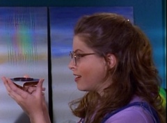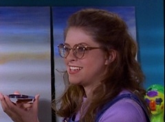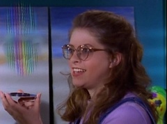 At Angel Grove High School, several students are working hard on their art projects in art class. The students include Violet, Tommy, Adam, Billy, Kimberly, Bulk, and Skull. Ms. Binx, the art teacher, goes around the classroom, checking on each student's progress. Violet stares at Billy. When he glances over, she lowers her eyes. Tommy walks over to Kimberly and comments, I never thought sculpting would be this hard. Kimberly adds, or painting either. Kimberly notices Billy's art project, which is a hologram. Billy explains the image switches, depending on what angle you view it at. Adam joins them and takes a look at the hologram - he likes the image of waves crashing on a beach. Adam passes the disc to Kimberly. Kimberly enjoys the image. Violet walks up and Kimberly passes the disc to her. Violet takes a look at the image. She tells Billy, it's beautiful. Do you want to see my project?