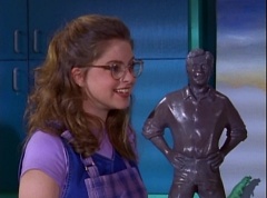 Billy replies, sure, At the other table, Violet reveals her statue. Tommy compliments her, by telling her the statue is excellent. Kimberly notes it looks just like Billy. Billy nervously agrees. The bill rings and Ms. Binx reminds the students that tomorrow they will finish off their projects and get a chance to show them off to the class. As the students clean up, Violet walks up to Billy and taps him on the shoulder. Billy turns around and she asks maybe I will see you at the gym? Billy replies, sure why not. They both grin at each other. Violet walks away. Once the room is empty, Rita Repulsa turns the statue into Evil Billy. After school, at the Youth Center, evil Billy is lifting weights. Ernie walks over to deliver a tray of drinks to where Kimberly, Tommy, Adam, Rocky, and Aisha are studying at. Ernie comments that Billy's workout plan must be working. Adam, Rocky, and Aisha glance over at evil Billy. Rocky comments, I would like to know his secret. Violet is there as well and she is openly admiring evil Billy. Evil Billy gets a look of contempt when he notices Violet. Evil Billy walks over to the counter and deliberately passes by Violet. With a big smile on her face, Violet tells him hi. Evil Billy keeps his back towards Violet as she tries to talk to him. Hurt, Violet walks away.