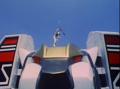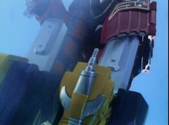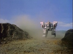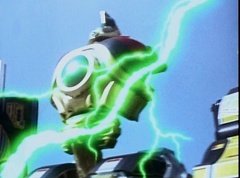 Vase Face grows to giant size. The Rangers summon their zords. Thunder Megazord is formed. White Tiger Zord transforms into warrior mode. Vase Face charges towards Thunder Megazord and Tiger Zord.