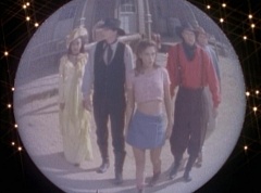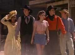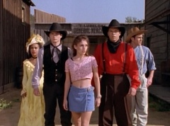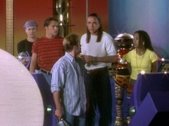 Adam can't believe that Bulk and Skull's ancestors were trying to find out who they were. Tommy asks Billy, see if we can find Kimberly? Billy tries the device once more. Kimberly, Abraham, Miss Alicia, William, and Rocko appear in the viewing globe. Tommy is very happy to see that Kimberly is alright. Billy notes that the people Kimberly are with, look like us. Zordon explains, those teenagers are your great, great, great grandparents. The first Earthlings to use the power coins.