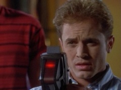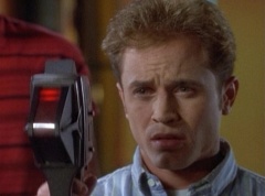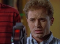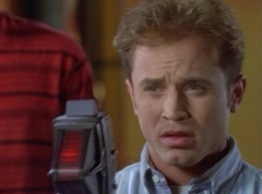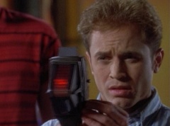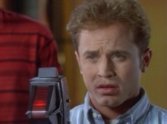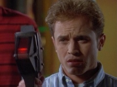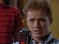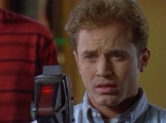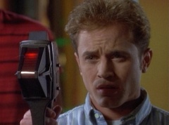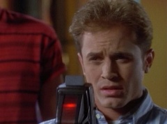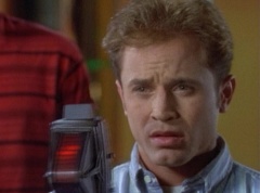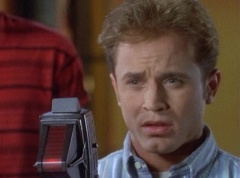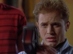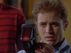 Zordon explains, chronotron particles exist outside the space time continuum. Billy concludes, so if we tune in to these particles, we'll be able to see images from the past. Billy volunteers to help Alpha 5 with the adjustments. After awhile, Billy picks up a device and points it towards the viewing globe. An image soon appears in the viewing globe.