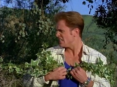 Rocky wonders what Bulk and Skull are doing in the past. Zordon informs them that is not Bulk and Skull. That is their ancestors. They can also hear what Bulk and Skull's ancestors were saying - they were trying to find the identity of the Pink Ranger. Adam can't believe that Bulk and Skull's ancestors were trying to find out who they were. Tommy asks Billy, see if we can find Kimberly? Billy tries the device once more. Kimberly, Abraham, Miss Alicia, William, and Rocko appear in the viewing globe. Tommy is very happy to see that Kimberly is alright. Billy notes that the people Kimberly are with, look like us. Zordon explains, those teenagers are your great, great, great grandparents. The first Earthlings to use the power coins. Tommy asks Billy if they can get a closer look at those trees. Billy replies, sure, I'll try and points the device at the viewing globe. The viewing globe shows numerous Putties hiding. Alpha 5 becomes alarmed - it's an ambush! Tommy adds, there's nothing we can do to stop it. Alpha 5 wishes they had found those chronotron particles. Soon, Billy tells Tommy, I think I've figured out a way to bring Kimberly back to the present, but I'm going to need three communicators. Without hesitation, they give Billy their communicators. Billy quickly works on the communicators. Zordon informs them that the blast only knock the cactus plant into the present. You need to confront him. Billy points out that he is not finished with the communicators. Tommy suggests that he and Rocky go. We'll see you as soon as you can. Rocky and Tommy morph and teleport out. After awhile, Zordon informs them that the Red Ranger and the White Ranger are in trouble. You need to join them now. Billy tells Aisha and Adam, this will have to wait. Billy, Aisha, and Adam morph and teleport out. The three Rangers arrive and Unicorn Thunderzord, Lion Thunderzord, and Griffin Thunderzord combine with White Tiger Zord to form Mega Tigerzord. Needlenose threw cactus balls at Mega Tigerzord. Mega Tigerzord forms a shield in front of it and the cactus balls were deflected and hit Needlenose instead. Mega Tigerzord threw it's weapon and destroyed Needlenose. Afterwards, at the Command Center, Zordon congratulates Billy, Aisha, Adam, Tommy, and Rocky. You have saved the world again. Tommy remarks, we may have saved the world, but we lost Kimberly. Aisha tells Billy, we got to get her back. Billy tells his friends he has adapted the communicators to enhance and accelerate the teleporting mechanism, and create a time hole. But I have to warn you, we can only try this once and if it fails.....Tommy adds, Kimberly is trapped in the past forever. Billy tells them where the time hole should appear and gets to work. A time hole appears and within moments, Kimberly is walking through it. Kimberly gives Tommy a big hug and tells her friends, I knew you guys would rescue me. Everyone is very happy.