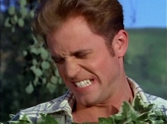 At Angel Grove High School, several students are working hard on their art projects in art class. The students include Tommy, Adam, Billy, Kimberly, Bulk, Skull, and Violet. Ms. Binx, the art teacher goes around the classroom, checking on each student's progress. Violet stares at Billy. When he glances over, she lowers her eyes. Tommy walks over to Kimberly and comments, I never thought sculpting would be this hard. Kimberly adds, or painting either. Kimberly notices Billy's art project, which is a hologram. Billy explains the image switches, depending on what angle you view it at. Adam joins them and takes a look at the hologram - he likes the image of waves crashing on a beach. Adam passes the disc to Kimberly. Kimberly enjoys the image. Violet walks up and Kimberly passes the disc to her. Violet takes a look at the image. She tells Billy, it's beautiful. Do you want to see my project? Billy replies, sure. At the table, Violet reveals her statue. Tommy compliments her, by telling her the statue is excellent. Kimberly notes it looks just like Billy. Billy nervously agrees. The bell rings, and Ms. Binx reminds the students that tomorrow they will finish off their projects and get a chance to show them off to the class. As the students clean up, Violet walks up to Billy and taps him on the shoulder. Billy turns around and she asks maybe I will see you at the gym? Billy replies, sure why not. They both grin at each other. Violet walks away. Tommy reminds Billy, Kimberly, and Adam that they have to get going. They are suppose to study with the others at the Juice Bar. Billy, Kimberly, Adam, and Tommy head out of class. After awhile, Billy, Adam, Tommy, and Kimberly stopped at the park. They were sitting at picnic tables. Tommy was having doubts about his project and was reluctant to show it to the whole class. Tommy thought maybe he could make it taller as he joins his friends at the table. Adam points out that Violet stares at Billy all day at class. Violet has a crush on you. Billy remarks, I really wouldn't know what to say to her. Kimberly encourages Billy to ask her out. She seems really nice. Billy agrees and plans on asking her to a movie. Adam thinks it's perfect. Kimberly adds definitely. Tommy is so concern with his art project he hasn't focused on the conversation around him. That's it! I'll say it's an alien! There was a burbling sound and they all looked up. Several of Zedd's Putties have arrived. Adam comments, don't these guys every learn? Tommy tells his friends, let's go! The four teens race towards Zedd's Putties. Tommy fights a batch of Zedd's Putties. Adam fights another batch of Zedd's Putties.