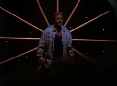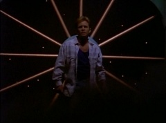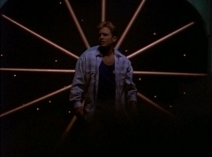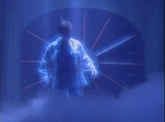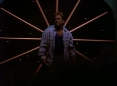 Billy called for his friends as he walked around. A device shot out a blue ray that kept him from going any further. Billy checked for his communicator, but it was gone. Billy spotted it on the floor and reached for it, but was too late as Goldar got it before him. Billy demanded that Goldar give it back to him. Goldar replies, why it would be my pleasure. Squatt was in the Dark Dimension as well, holding Billy's backpack. Billy was surprised to see a duplicate of himself take the morpher and backpack from Squatt. (The statue that Violet had created had been turned into Evil Billy.) He took the communicator from Goldar as Squatt stumble over what to call evil Billy. Evil Billy glare at Billy as Goldar told him, you know what to do. Gain the Rangers' trust, then steal their communicators and morphers. Once they've been cut off from Zordon, Lord Zedd and Rita will be able to crush them once and for all! Billy tells evil Billy that he will never get away with this. No one is going to believe you are me. Evil Billy doesn't say anything, just glares, and then vanishes. Goldar tells Billy it's a pity you won't be around to see it. The Fog of Morpheus causes eternal sleep. Goldar laughs and he and Squatt vanish.