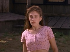 Zedd's Putties move in closer and the teens separate. Kimberly battles a Putty with a swift kick. Rocko uses a wash basin to battle another group of Zedd's Putties. Abraham and Miss Alicia incorporate dance moves to fight their batch of Zedd's Putties. William manages to get a Putty to fall. The rest of Zedd's Putties step on the Putty's back as they chase after William. Kimberly continues to battle her batch of Zedd's Putties. Goldar appears behind her. Goldar states, well Miss Kimmy, your pathetic power imposters couldn't fight tooth decay, much less Zedd's Putties. William, Rocko, Miss Alicia, and Abraham gather around Kimberly. Goldar continues by telling Kimberly, why don't you just sit a spell while I consolidate my master's control of the world. Goldar laughs and vanishes. Miss Alicia, Abraham, Rocko, and William become alarmed. Kimberly tries to protect her new friends as Zedd's Putties run in circles around them. Miss Alicia is the first to spot the White Stranger racing towards them. Abraham comments, just in time. White Stranger gets off his horse and immediately fights Zedd's Putties. After defeating several, White Stranger walks over to them. A Putty gets behind Kimberly. White Stranger spots him and hits him. Kimberly starts to fall, but White Stranger catches her. White Stranger tells them, if you need me again, just holler. I'll be here. Goldar and Needlenose appear. Zedd's Putties go over to Goldar and Needlenose. Goldar can't believe they are still here. It's time you all got out of town and don't come back! Kimberly replies, for once you're right Goldar. Kimberly tells her new friends, it's time. Kimberly, Miss Alicia, William, Rocko, and Abraham morph. The Rangers race forward into battle. White Stranger battles a batch of Zedd's Putties as well. Blue Ranger battles another batch of Zedd's Putties. Red Ranger has fun as he plays Toro Toro with his batch of Zedd's Putties. Yellow Ranger battles another set of Zedd's Putties. Black Ranger battles a batch of Zedd's Putties, but he is disappointed that Zedd's Putties messed up his boots. Eventually Zedd's Putties are destroyed. The Rangers and White Stranger gather together and face down Goldar and Needlenose. Needlenose shoots one of it's spores and it hits White Stranger. He is immediately paralyzed and falls to the ground. Pink Ranger drags him to safety and the Rangers stand in front of him. Needlenose is ready to fire another spore. Goldar exclaims enough! This is the final showdown Miss Kimmy. When my spiny friend and I are through with you, Angel Grove's past will be destroyed and your friends in the future will vanish forever! When I count to three, draw! Goldar starts counting. The Rangers fired their Blade Blasters. The force sends Goldar and Needlenose back through the time hole. Pink Ranger asks White Stranger if he is okay? White Stranger is much better. Pink Ranger demorphs and they join Miss Alicia, William, Rocko, and Abraham out in the street. Everyone is in high spirits. Soon Miss Alicia, William, and Abraham start dancing, to the amusement of Kimberly. Afterwards, a time hole appears and Kimberly takes a chance and goes through it. She ends up at the Command Center, in present time. Kimberly gives Tommy a big hug and tells her friends, I knew you guys would rescue me. Everyone is very happy.