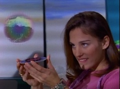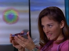 At Angel Grove High School, several students are working hard on their art projects in art class. The students include Kimberly, Tommy, Adam, Billy, Bulk, Skull, and Violet. Ms. Binx, the art teacher goes around the classroom, checking on each student's progress. Violet stares at Billy. Tommy walks over to Kimberly and comments, I never thought sculpting would be this hard. Kimberly adds, or painting either. Kimberly notices Billy's art project, which is a hologram. Billy explains the image switches, depending on what angle you view it at. Adam joins them and takes a look at the hologram - he likes the image of waves crashing on a beach. Adam passes the disc to Kimberly. Kimberly enjoys the image.