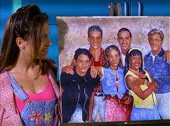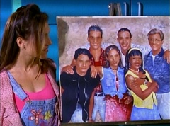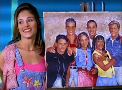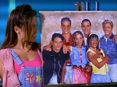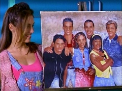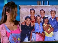 The next day, at Angel Grove High School's art class, Ms. Binx walks in. She asks who would like to be first to show their project? Kimberly volunteers and displays her painting. Ms. Binx thinks it's lovely. Tommy gives Kimberly a thumbs up. Ms. Binx tells Kimberly she has done a remarkable job capturing the warmth and the friendship you all share. Bulk and Skull walk in front of Kimberly's presentation. Bulk remarks, not to mention the dorkness too. Bulk and Skull laugh. Ms. Binx has Bulk and Skull go next. Kimberly carries her painting back to the table where Tommy and Adam are sitting. Bulk states, as many great artists do, we had someone else do the work for us. Skull and Bulk applaud Violet. Ms. Binx remarks, oh really? Name two? Skull replies, Bulk and Skull. Ms. Binx can only shake her head. Bulk continues, this statue will sit proudly in town square and the Power Rangers themselves, will appear and thank us for our vision. Bulk pulls the cloth off the statue. The statue is dressed in a gold Mighty Morphin costume and looks a lot like Billy. Violet asks Billy if he likes it? Billy is stunned and doesn't know what to say. Skull and Bulk are stunned as well. Bulk asks Violet, what is this suppose to be? Violet replies, I thought you would want a statue that illustrates the qualities that it takes to be a Power Ranger. If anyone has them, it's Billy. Billy is flattered. Bulk remarks, that dweeb! You are out of your mind. Skull adds, get real! Bulk continues, Billy...a Power Ranger! That is the most ridiculous thing I have ever heard in my entire life. Kimberly, Adam, and Tommy, exchange amused glances. Skull and Bulk walk out. Kimberly, Adam, and Tommy gather around Billy and Violet. Tommy imitates the same pose as the statue.
