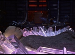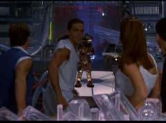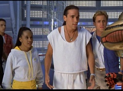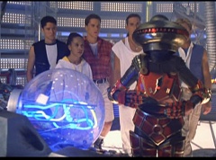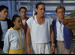 Rocky, Aisha, Adam, Tommy, and Billy hurry over to Alpha 5, as Kimberly stays by Zordon's side. Tommy asks Alpha 5 if he is ok? Alpha 5 replies, I'll be fine. There may be a power that can save Zordon. Adam asks, what power? Alpha 5 replies, it is on the distant planet of Phaedos. It's very dangerous. All who have tried for it have perished. Rocky states, we have to try, Alpha. Alpha 5 tells the teens, Zordon's life force will not last long. You won't have much time. Tommy asks, how can we get there? Alpha 5 thinks maybe if he can download the very last plasmatic morphing gem into the transport core, I might have just enough power to get you there. But there won't be any left to get you back. Rocky asks, so how do we get back? Kimberly joins the group and tells them, we have to hope that the power's there. Zordon's life depends on it. Alpha 5 punches a couple of buttons and asks them if they are ready. The teens are ready. Tommy tells them, we may not have our powers, but we're still the Power Rangers. Alpha 5 warns the teens that Zordon does not have much time. Alpha 5 presses the button. The power struggles for a moment but then the teens are teleported out of the Command Center. Alpha 5 pleads with Zordon to hold on.