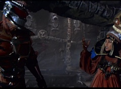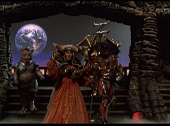Rita Repulsa spots the teens as they teleport to Phaedos. Rita is upset. How could he let them slip through his hands? He's no better than the rest of the hired help around here! Lord Zedd tells her to give it a rest. Ivan Ooze enters the Moon Palace. Rita immediately launches into him. You egg-sucking purple pinhead! The Rangers are going after the Great Power! I thought you said this guy was the master of disaster. He's nothing but a slime-infested jelly doughnut!