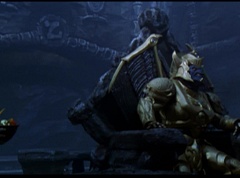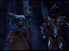 At the Moon Palace, Goldar is enjoying sitting on the throne. Mordant bows down to him as Goldar declares that he is King Goldar, the Ruler of the Universe! The doors open and it is Rita Repulsa and Lord Zedd. Goldar and Mordant know they are in trouble.