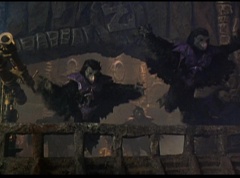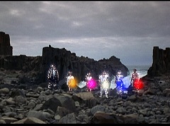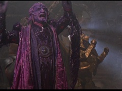 Ivan Ooze considers what to do for a moment. Ivan Ooze then shoots out a large booger. The goo starts to bubble and spread. Tenga Warriors emerge from the goo. They squawk loudly among themselves until Ivan Ooze tells them to be quiet. Ivan Ooze instructs them that they will fly to Phaedos, find the Power Rangers, and tear them apart. The Tenga Warriors immediately take off flying towards Phaedos.