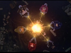 Each Ranger calls on their Ninja Zord. Goldar has been watching and he is concern. The Ninja Zords arrive. Goldar points to the sky and tells Ivan, it's the Zords! Ivan is not concerned, he is confident that he can crush them. The Rangers enter their Ninja Zords. Meanwhile, the hypnotized parents continue on their way to the construction site.