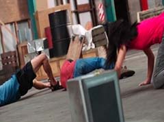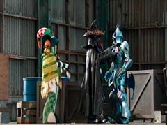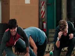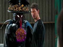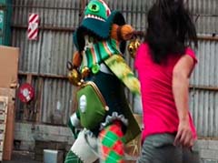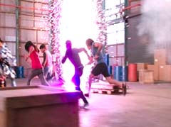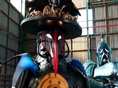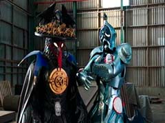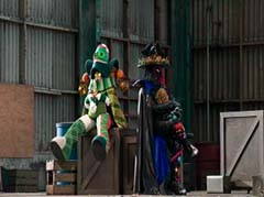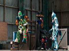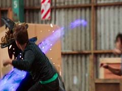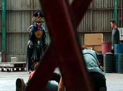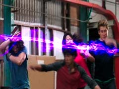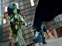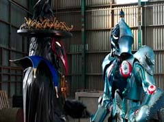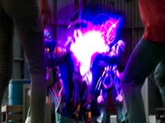 Curio and Spellbinder are sitting on crates. Wrench storms in and yells at Spellbinder. You told Sledge that the Black Ranger was under your control! Spellbinder tells Wrench to relax. He's going to join us soon. Koda, Tyler, Shelby, and Riley arrive. Tyler tells Spellbinder, wrong on both accounts. Koda adds, Chase never join you! Spellbinder tells them, it's too late for your friend. And now your time is up! Spellbinder casts a spell and the four teens avoid getting hit. Shelby, Koda, Riley, and Tyler charge towards Curio, Wrench, and Spellbinder.
