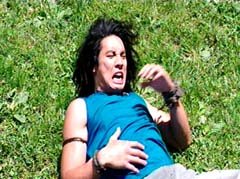 On a very hot day, Koda, Chase, Riley, and Tyler are digging in an area where previous dinosaur fossils have been found. Chase notices Shelby sitting at a table and wonders what she is up to. Shelby, deep in thought, traces the drawings of dinosaurs with a pencil. She becomes frustrated and mutters, something isn't right. Chase shouts, how about lending a hand?! Shelby gets up and tells the guys, follow me for a sec. Keeper gave ten Energems to ten different dinosaurs. Koda excitedly adds, of course! But then realizes he has no idea what Shelby is trying to tell them. Shelby continues, we found five Energems. So five are still lost. Those Energems would only be found near the fossils of the Pterodactyl, Ankylosaurus, Pachycephalosaurus, Plesiosaurus and Brachiosaurus. We shouldn't dig here just because we found bones here before. Tyler thinks over what she says and asks, where should we dig? Shelby doesn't know yet. Koda, Chase, Riley, and Tyler chuckle. Shelby doesn't give up, she tells them she has an idea. She calls the guys over to the table. Shelby tells them, if we combine the known areas with where the remaining dinosaurs lived, with the energy signatures from each dinosaur's Energem, then we can pinpoint more accurately where to look. Koda repeats, energy signature. He asks Chase, what Shelby say? Chase responds, she just doesn't like getting dirty. Shelby disagrees. What I'm saying is, we need to work smarter not harder. Riley agrees with Shelby about the energy signatures, as the rest of the guys notice that their drinks are empty. Riley wonders how you could track it? Shelby takes a drink as she thinks it over. Chase asks, you finished all our drinks? Shelby doesn't feel guilty, it's really hot out here. Tyler agrees, we noticed. Koda adds, Shelby drinks like camel. Shelby asks, shouldn't we at least test my theory? There is no response from the guys. Shelby gets mad. I don't need anything from you guys anyways. Shelby storms off in the direction of Tyler's jeep, but then quickly turns back. Tyler digs out his keys as Shelby tells him, I need your keys. Tyler tosses her his keys. Koda grins as Shelby catches them, grabs a drink, and walks off. Later, Koda, Chase, Riley, and Tyler slide into the Dino Lab. Shelby welcomes them. Shelby asks, find anything? Koda thinks he found poison ivy. Shelby and Kendall stand next to each other as Kendall tells them, well we had a very successful day. Shelby holds out a Charger and tells them this is a Ankylo Charger. It's the brain that runs our (Shelby emphasizes our) new invention. The E Tracer. Shelby places the Ankylo Charger into the E Tracer. Riley is very interested in the new machine. The E Tracer begins searching. Riley is very excited and tells Shelby and Kendall, you did it! Everyone excitedly watches. Shelby explains it's using the satellite network, trying to find an Energem signature. It's searching for traces of the Aqua Energem. Data is constantly being fed back on their monitor. Kendall notes, it's locking on to something. A few moments later, Kendall tells them, that's definitely the right energy signature, but I can't say if it's an Energem. It might be a zord. Riley notes, it isn't too far away. Shelby is eager to get started and tells the guys, this time we're going to dig in the right place. Koda, Chase, Riley, Shelby, and Tyler are walking in the area of the signal, following the Dino Com's directions. They pause when they see a giant hole in the ground. Tyler notes, looks like someone beat us to it. Suddenly Stingrage and several Vivix jump out from the hole. Koda, Chase, Riley, Shelby, and Tyler race towards the Vivix. Koda kicks several of the Vivix. Tyler fights another set of Vivix. Riley kicks and swings Vivix away. Shelby kicks another set of Vivix. Chase also lands several kicks against Stingrage. Stingrage tells him, you'll get a kick out of fighting me. Stingrage kicks Chase in the chest and Chase falls to the ground. Chase shouts, don't let him get away! He might have the Energem! Tyler tosses aside a Vivix and runs after Stingrage. Riley checks the Dino Com and informs them that there is no sign of an Energem. Tyler fights Stingrage. Stingrage grabs Tyler by the back of his shirt and states, there might not be an Energem. But I left a little something for you anyway. Stingrage tosses Tyler aside. Koda races towards Stingrage. Koda fights Stingrage. Stingrage is impressed. Not bad Ranger, but not good enough. Stingrage strikes Koda with his staff, knocking Koda off his feet. As Koda falls to the ground, Stingrage uses his staff to shoot at Koda's back. Koda cries out in pain. Shelby fights the remaining Vivix. Koda slowly gets back up as Chase, Riley, and Tyler run over to him. Riley asks Koda if he is okay? Koda pushes Riley away. Stingrage shouts, bye bye! Have fun fighting your friend! Riley runs over to Koda but Koda flips Riley over. Koda punches Tyler several times as Tyler yells at him to stop. Koda sends Tyler spinning into the air. As Tyler falls, Chase races over and plops onto the ground just as Tyler lands on Chase's back. Shelby watches and wonders, what's got into him? Shelby hurries over to Koda, but Koda pushes her away. Riley tries to calm Koda down and ends up being struck by Koda. Chase and Tyler rush forwards and each grab one of Koda's arms. Tyler kicks out Koda's legs as he shouts, get him on the ground! Koda quickly flips his way back up and kicks Riley and Shelby away. Tyler notices there is something on Koda's back. Chase and Tyler grab Koda's arms and push him to the ground. Koda easily shakes them off and gets back up. This time Chase and Riley try to hold Koda still. Riley looks at Koda's back and tells them, it's some kind of stinger. Pull it out! Tyler grabs Koda by the waist as Shelby runs up from behind. As Chase, Riley, and Tyler hold Koda, Shelby pulls out the stinger. Immediately Koda's rage leaves him. Chase asks Koda if he is okay and shakily Koda replies, yes, I'm okay. 