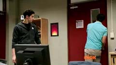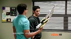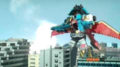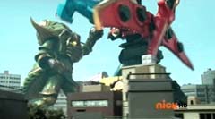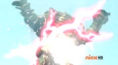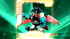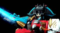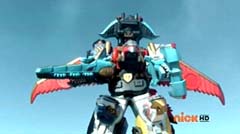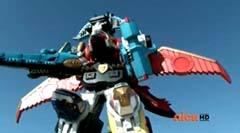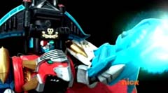 Hammerhead Zord, Sawshark Zord, and Manta Zord attached themselves to Gosei Great Megazord to form Sea Megazord. Virox yells at Sea Megazord, I'm not afraid of sharks. Blue Ranger replies, and we're not afraid of bugs! Blue Ranger has Sea Megazord scan Virox. Sea Megazord and Virox fight. Sea Megazord strikes Virox several times using each of the new zords for the blows. Virox turns his back towards Sea Megazord to protect itself. Sea Megazord strikes Virox's back with it's sword, but nothing happens. Virox turns back around. Virox gloats, nothing can destroy a virus like me. Blue Ranger is ready to test that theory. Blue Ranger pulls out the Victory Charge Power Card and activates it. Blue Ranger instructs Sawshark Zord, Manta Zord, and Hammerhead Zord to crush this virus. The three zords strikes Virox several more times and Virox is destroyed. The Rangers cheer. Blue Ranger tells them, Mega Rangers, that's a mega win. After the battle, the teens return to Harwood County High School. Noah is working in the tech room when Jake walks in. Jake tells Noah that Gia was very impressed with the way you handled my ax. Some wingman you are. Noah replies, speaking of your ax. Noah gets up and shuts the door and walks over to the guitar case. Noah opens the case and inside is the Snake Ax. Noah tells Jake, I adjusted it for you. Jake doesn't notice anything different. Noah takes the Snake Ax out and explains, it's totally recalibrated. Noah passes the Snake Ax to Jake. Jake is eager to check it out. He tosses the Snake Ax from one hand to the other. Jake swings the Snake Ax and Noah has to duck or be hit. Jake loses control and accidentally hits the computer. Jake asks Noah, what just happened? Noah replies, titanium alloy. It's forty percent lighter than before. So now you can be more agile with less effort. Jake is not so sure. He tells Noah, I'm not sure I can get use to it like this. Noah tells him, you will get use to it, just believe in yourself.